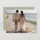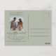A modern simple design with decorative typography and an elegant calligraphy script along with a full photo on the front and a smaller one on the back of a sage background. Easily customize your personalized details of choice. A great way to announce your wedding, and ideal for any wedding theme venue.