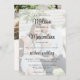 Die wunderschöne schwarze Schrift ergänzt das weiße, transparente Overlay dieser zeitgenössischen und modischen doppelseitigen Hochzeitseinladung, die Ihre Hochzeitsinformationen über einem Ihrer Lieblingsfotos in der Verlobung zeigt. Passen Sie diese Karte mit Ihren Informationen zur Hochzeitszeremonie in dunkelgrau an, um einen schönen, eleganten und romantischen Look zu erhalten. Ein zweites Bild, Ihre Online-UAWG und das Fälligkeitsdatum, ein individueller QR-Code, der die Gäste zu Ihrer Hochzeitswebsite, Ihren Monogrammen und Ihrem Hochzeitsdatum führt, sind alle auf der Kartenrückseite enthalten.