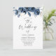 Modern Trendy Navy Blue Watercolor Floral Wedding Einladung