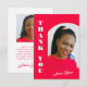 Fun, modern script lays over a hot raspberry pink background and around your graduate's photo. On the back is another photo and your thank you text. You can add your own photos and text by following the "Personalize this template" link. You can edit further if you wish, including colors. If you would like assistance, please reach out to me via message on this site. I will be happy to help!