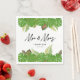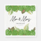 Ein einfaches, minimalistisches tropisches Blätter und schwarzer Schriftzeichen "Mr. & Mrs." Hochzeitsnapkin, die an Ihren Nachnamen und Ihren Hochzeitsdatum angepasst werden können. Ideal für Hochzeitsfeiern und eine Hochzeit mit tropischen Themen.
