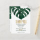 Eleganter, moderner und schlichter grüner tropischer Strand schweifen Käse-Monstera-Blatt auf weißem Hintergrund mit Imitaten bedruckte Goldfolie Typografie Sommer Dankeschön Postkarten. Dieses klassische und elegante Design eignet sich perfekt für stilvolle und trendige Events, wie Hochzeiten und alltägliche Anlässe. Das gesamte Foto ist gedruckt.
