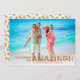 Diese stilvolle Weihnachtsfotokarte mit einer Bleichfoto-Vorlage und einer stilvollen, modernen Typografie - ideal, um ein Foto aus Ihrem Urlaub zu zeigen und Ihren Freunden und Familie einen kleinen Einblick in Ihre Reiseabenteuer zu geben! Ein Weißgradientenüberlagern am unteren Rand ermöglicht es dem Text, sich über das Foto zu heben. Das Wort "PHANTASTISCH" ist in Imitaten Goldfolie entworfen, und die Rückseite enthält ein Muster von Imitaten Goldfolie Ananas, die gut mit jedem tropischen Foto koordiniert!