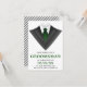 Mit dieser modernen Anforderungskarte laden Sie Ihre Trauzeugen mit einem klassischen Tuxedo mit grüner Krawatte vor weißem Hintergrund ein. Fügen Sie einfach Ihre Veranstaltungsdetails zu dieser einfach zu bedienenden Vorlage hinzu, um sie zu einer einmaligen Einladung zu machen. Dreh die Karte um, um ein Schwarz-Weiß-Streifen-Muster auf der Kartenrückseite zu zeigen.