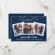 Drei Fotos Ihres Paares sind Features auf einem tiefblauen Hintergrund. Die Twinkle-Leuchten schaffen eine elegante Oberkante.