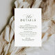 This wedding details enclosure card features olive green script typography on a clean white background. Its modern and elegant style makes it perfect for sharing information, event details, or other wedding notes. Simple, stylish, and easy to customize for any wedding theme.