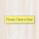 Dieses elegante und zeitgenössische Design enthält die Meldung "Bitte haben Sie Platz". Dies könnte in einer gewartet Lounge genutzt werden, um Patienten, Besucher oder Kunden darüber zu informieren, dass sie in Kürze unterstützt werden und in der Zwischenzeit einen Sitzplatz haben sollten.