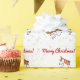 Niedliche, mädchenhafte und dennoch elegante Weihnachtsverpackungspapier mit einer Illustration eines magischen, verglasten Einhornpferdes mit einem roten und goldenen Glitzer Mund und Schwanz, und die Begrüßung "Frohe Weihnachten" in stilvoller, kursiver Schrift / Kalligrafie. Das Design umfasst silberne und cremefarbene Schneeflocken und Sterne für eine festliche Urlaubsstimmung.