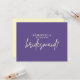 Pop the question in style with this modern violet and yellow bridesmaid proposal card. Featuring a clean, contemporary design, it’s a thoughtful and stylish way to invite your closest friends to stand by your side.
