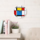 Modern wall clocks with colorful Mondrian inspirred geometric abstract art design on the clock face in a wall decor clock that liven up any room with some character and style. Designed for a kitchen, dining room, living room, or any place in your house you want to decorate in a stylish way.