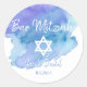 Modern Watercolor Blue Star Bat Bar Mitzvah Runder Aufkleber
