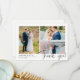 Wir bedanken uns bei Ihren Hochzeitsgästen mit einer Collage aus Foto, in der Sie drei Ihrer eigenen Fotos mit Hochzeitsmusik genießen können. Fügen Sie Ihre Namen und das Hochzeitsdatum in einem modernen schwarzen Schriftart hinzu. Vielen Dank, dass Sie in einer charmanten, handgeschriebenen Schrift geschrieben sind. Auf der Rückseite können Sie mit der Hand eine persönliche Danksagung auf dem leicht gesäumten Hintergrund schreiben.