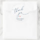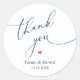 Modern Wedding minimalist Thank You Gifts Classic favor Round Sticker, in romantic script, cute little red heart, with bride and groom signature and wedding date, navy blue theme.