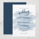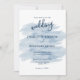 A Modern Wedding Invitation designed with a color wash of light and dark shades of blue on a white background. The text includes: The Bride and Groom's Names, Wedding Date, Time, Location and Reception Details. The reverse side is a matching deep blue background. To personalize, simply insert your text into our easy template, replacing the sample. Be sure to view the complete Modern Wedding Shades of Blue Collection for matching stationery and accessories.