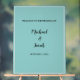 Greet your guests with style using this beautiful modern wedding welcome sign. Featuring a sleek, minimalist design with a sophisticated font pairing, it is personalised with the names and wedding date for a professional look. This high-quality physical sign is perfect for placing at the entrance of your ceremony or reception, creating a sophisticated and welcoming atmosphere that matches your elegant wedding theme.