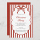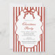 Modern Whimsical Bow Illustrated Christmas Party Invitation featuring red and white stripes, script typography, all wrapped up in a red bow. The perfect invitation for your company or family Christmas party!