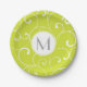 Modern Whimsical Curls Lime Green Monogram Pappteller