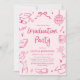 Modern Whimsical Hand Drawn Pink Graduation Party Einladung