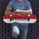 modern stylish red white personalized name skateboard, modern red white custom name skateboard .