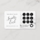 Entdecken Sie die ultimative Kundenkarte, die auf moderne Profis wie Künstler, Make-up-Künstler und Nageltechniker zugeschnitten ist. Dieses schicke Design präsentiert eine raffinierte Mischung aus weißem und schwarzem Marmor mit eleganter Schrift-Typografie. Diese trendige, stilvolle und einzigartige Karte verbindet Modernität mit Eleganz und beeindruckt Ihre Kundschaft.