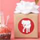 Moderne weiße Elefanten auf Red Background, Sticker für White Elephant Geschenke Austausch Weihnachtsspiel oder Ihre Ideen Party.