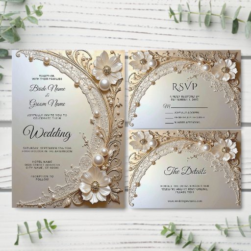Modern White Flowers Pearls Detail Enclosure Begleitkarte