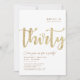 Einfache, weiße und goldene "Dreißig" personalisierte 30. Geburtstagseinladung mit klassischer und moderner Typografie. Anpassen mit Namen, Alter und Party.