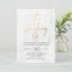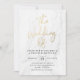 Moderne Hochzeitseinladung mit einem modischen Script-Schriftart aus Goldfolie, weißem Marmorhintergrund und Platzhalter für Ihre individuelle Hochzeitseinladung. Die Rückseite der Einladung kann mit dem Tool Anpassen in eine Farbe Ihrer Wahl geändert werden.
