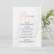 Modern White Marble Rose Gold Script Wedding Menu Menükarte