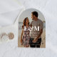 Arch-förmige Acryl-Save the Date Hochzeitsankündigung, die Ihr Foto mit Ihren Monogramm-Initialen in großer eleganter weißer Typografie überlagert. Passen Sie Ihre Save the Date Details in modernen, weißen Schriftzeichen an.
