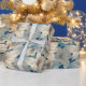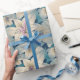 Modern White Poinsettia Christmas Blue Pattern Geschenkpapier