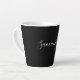 Eine moderne Tasse mit angesagten Schriftzeichen mit weißem Schriftzeichen auf schwarz. Wenn Sie es vorziehen, aus vielen anderen Schriften zu wählen, indem Sie auf "weiter anpassen" klicken und das Schriftart-Menü in unserem Design-Tool benutzen.
