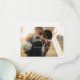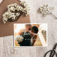 Doppelseitige kleine Hochzeitskarte mit einer Seite bedruckt mit einem Foto, danke und deine Namen als weißes Overlay in einer Kombination aus modernem Drehbuch und sauberen Buchstaben geschrieben. Auf der anderen Seite befindet sich eine ausgekleidete Dankeschön-Karte, auf der Sie ein Dankeschön von Hand schreiben können.