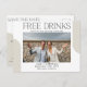 Diese rett-the-date-Postkarte ist ideal für das lustige Paar, das gerne ihren großen Tag teilen möchte! Mit einem modernen Design im Stil "Free Drinks (and We're Getting Married)", beinhaltet diese individuell gestaltbare Karte Ihr Foto, Ihre Namen, Ihren Hochzeitstag und Ihren Standort.