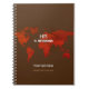 Ein modernes braunes Schulheft, personalisiert mit eigenem Namen (oder Firma, Marke...), Initialen und individuellen Textzeilen (Fachgebiet)... und mit einer bräunlichen Weltkarte.