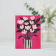 Die magentafarbenen Blüten blühen aus einer klassischen, schwarz gestreiften Vase auf einem leichten Minzhintergrund und sorgen für ein Vintages cooles Leben.