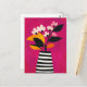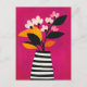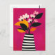 Ein kräftiger Fuchsienbukett tanzt in einer schwarz gestreiften Vase auf einem zesty gelben Hintergrund - mit hoher Energie und einem auffälligen Blick.