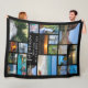 Erstellen Sie einfach ein modernes, einzigartiges Foto-Memory-Sake-Decke mit diesem leicht hochzuladenden Foto-Collage-Template mit 19 Aufnahmen und den vorgeschlagenen Titelseiten-ERINNERUNGEN in einem bearbeitbaren Schriftart, der in einer schicken handgeschriebenen Skripttypografie gezeigt wird und mit Ihrem eigenen Text in Weiß personalisiert ist, in einer bearbeitbaren schwarzen Hintergrundfarbe. Ein unvergessliches Geschenk für eine Person, eine Familie, ein Ehepaar oder einen Freund, um einen besondere Anlass wie Geburtstag, Jahrestag, Ruhestand oder Abschluss zu feiern oder für warme und tröstende Erinnerungen als Gedenkfeier für verloren gegangene Liebste oder Haustiere. ÄNDERUNGEN: Ändern Sie die Hintergrundfarbe und/oder ändern Sie den Textstil, die Schriftgröße, die Farbe oder die Platzierung, indem Sie im Bereich PERSONALISIEREN auf Schriftart BEARBEITEN klicken. HILFE: Bitte kontaktieren Sie den Designer, bevor er über die Registerkarte Zazzle Chat MESSAGE (Zazzle-MESSAGE) bestellt wird, um Hilfe bei der Änderung oder Personalisierung des Designs, bei Farbänderungen, bei der Größenänderung oder der Übertragung des Designs auf ein anderes Produkt zu erhalten. E-Mail: makeitaboutyoustore@gmail.com