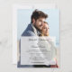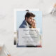 Die Einladung zur Hochzeit beinhaltet 2 vollblutende senkrechte Fotos, eines auf der Vorderseite und eines auf der Rückseite. Der Text erscheint in einem durchsichtigen weißen Feld auf der Vorderseite über dem Foto. Die Rückseite bietet für die UAWG Information einen benutzerdefinierten Text.