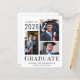 Eine preisgünstige Abschluss-Ankündigung mit 3 Foto-Collage und "Graduate" in eleganter moderner Typografie. Geben Sie den Namen, das Unterrichtsjahr und die Schule oder Universität ein.
