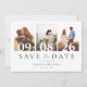 Erstellen Sie Ihre eigene Hochzeit speichern Sie die Datumskarten mit 3 Ihrer Lieblings-Fotos. Modernes, mutiges typografisches Design mit einfacher 3-Foto-Collage.