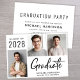 Moderne Abschluss-Ankündigung und Party Einladung mit einer 3-Foto-Collage, "Graduate" in großen Briefen und der Graduate der Klasse Jahr, Name und Schule oder Universität in einfacher Typografie. Fügen Sie die Party-Details auf der Rückseite hinzu.