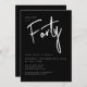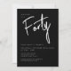 Moderne 40. Geburtstagseinladung in Schwarz mit weißer Schrift/Typografie. Die passenden Artikel und das Party sind ebenfalls verfügbar. Bitte nutzen Sie den unten stehenden Button für die Nachricht, um weitere Anpassungen und spezielle Anfragen zu erhalten. © Zoe Chapman Design
