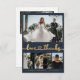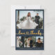 Modernes, elegantes "Liebe und Dank" Gold Script 4 Foto Collage Navy Hochzeit Dankeschön Karte. Minimalistische, stilvolle Hochzeitskartenvorlage mit vier (4) Rasterkollagen auf der Vorderseite und einem (1) Foto auf der Rückseite des Fotos. "Liebe und Dank" Text in einer handgeschriebenen Kalligrafie niedliche Herz Swash Schwanz Schriftart-Skript in Gold auf marineblau Hintergrund. Personalisieren Sie mit Ihrem Namen und danke Ihnen Nachricht. Wenn Sie Hilfe oder Matching Artikel benötigen, wenden Sie sich bitte an Designer!