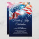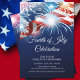 Moderne Feuerwerk-amerikanische Unabhängigkeitstag-Einladung mit blauen, roten und weißen Feuerwerken und amerikanischem Fahnen-Set auf blauem Hintergrund. Dreh den Rücken unseres Sommerurlaubs und lade zu einem passenden Rückblick ein. Stilvolle Einladung zum Grillabend am 4. Juli, zum Arbeitstag-Party oder zu einem Party zum Thema Patriot.