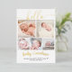 Eine moderne, schlichte und elegante Ankündigung der Geburt eines kleinen Mädchens mit 5 Foto Gitter-Collage und einer eleganten Typografie, die den Namen eines kleinen Mädchens trägt. Einführung Baby mit echter Goldfolie.