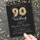 Moderne und festliche 90. Geburtstagsfeier Einladung mit dem Titel You Are Invited to a Party 90 YEARS IN THE MAKING in Kalligraphie Skript Typografie und Imitate Metallic Goldballon Nummern und Goldränder und Konfetti und Weiß Lichter in Ihrer Wahl der Hintergrundfarbe (in schwarz gezeigt). HILFE: Für Hilfe bei der Modifizierung oder Personalisierung des Designs, bei Farbänderungen, bei der Übertragung des Designs auf ein anderes Produkt oder wenn Sie die Dinge koordinieren möchten, wenden Sie sich bitte an den Designer BEVOR Sie die Bestellung über Zazzle Chat oder per E-Mail makeitaboutyoustore@gmail.com.