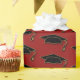 Ändern Sie die rote Hintergrundfarbe, um eine Schulfarbe oder eine Lieblingsfarbe zusammenzubringen. Moderne Abschlussgeschenkverpackung kennzeichnet eine Schwarz- und GoldAbschlusskappe, die mit Quaste komplett ist.