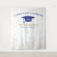 Moderne Abschluss-Feier Hintergrund für Foto-Gelegenheiten! Glitzer oben und unten, goldene Ränder von der oberen Kante, Graduierdeckel und blaue Schriftzüge, Namensvorlage in Gold. Klasse in Gold Glitzer Schrift mit Vorlage des Jahres in Weiß. Jahr, Name und Schulname hinzufügen.