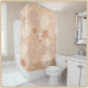 Schöner abstrakter kreisförmiger Duschvorhang in cremigen, rosigen, rötlichen Tönen. Fügt jedem Bad ein modernes Aussehen und eine sanfte Farbe hinzu.